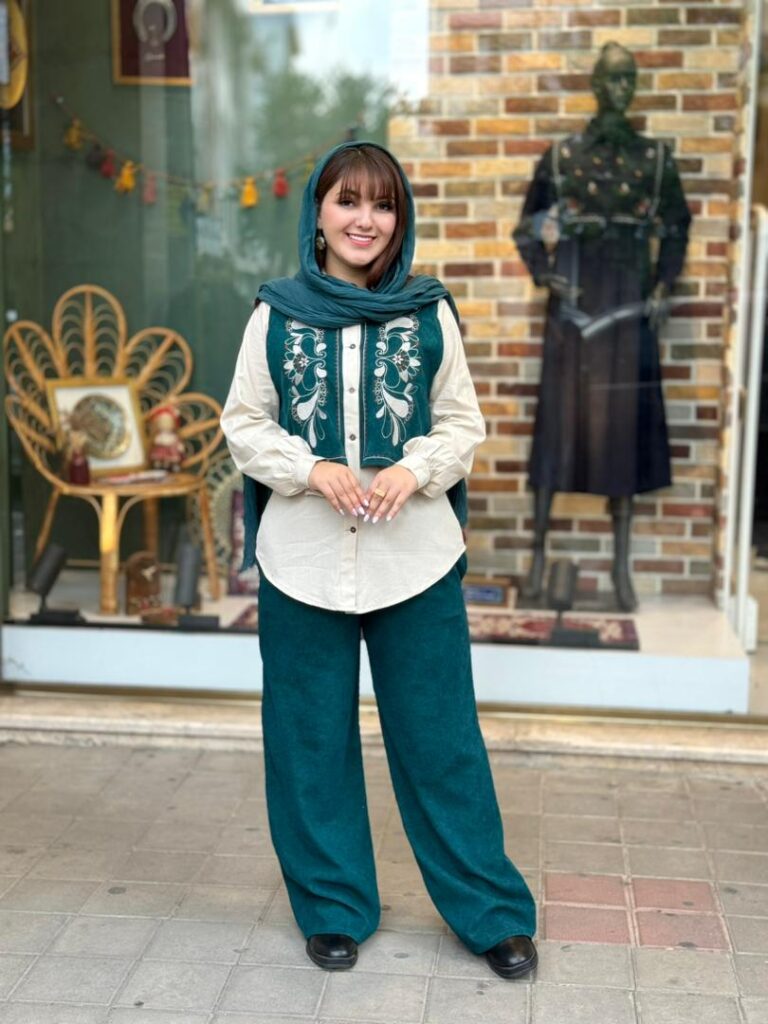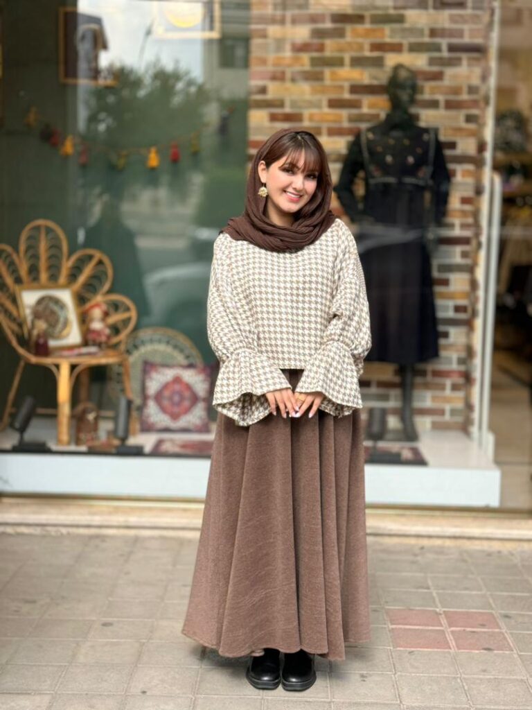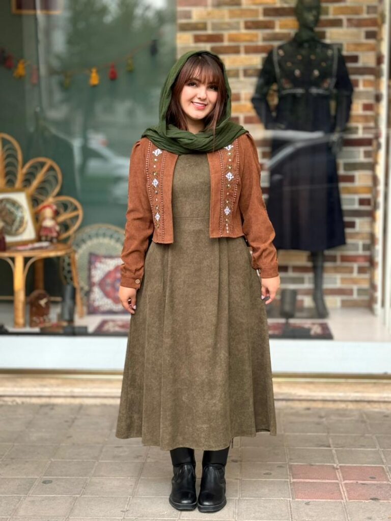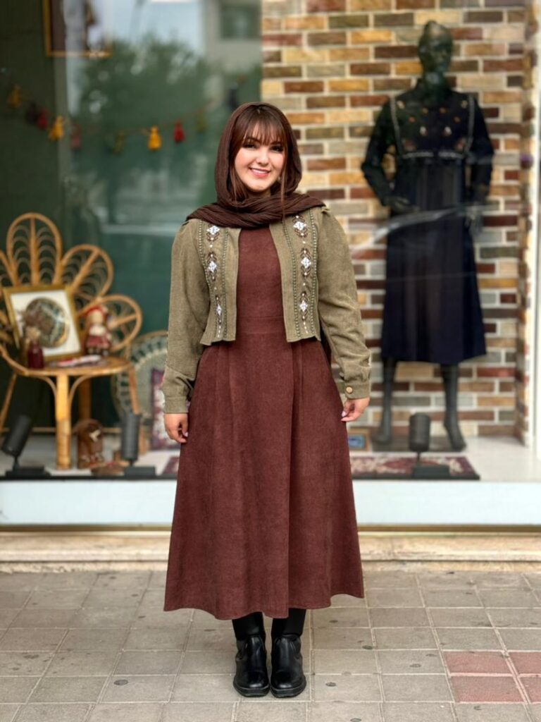 کت و سارافون نازلی کبریتی زیتونی قهوه ای