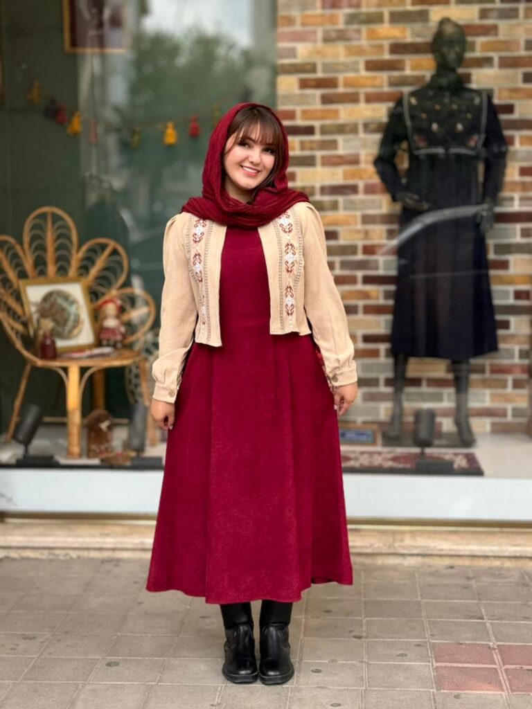 کت و سارافون پروانه کبریتی زرشکی کرم