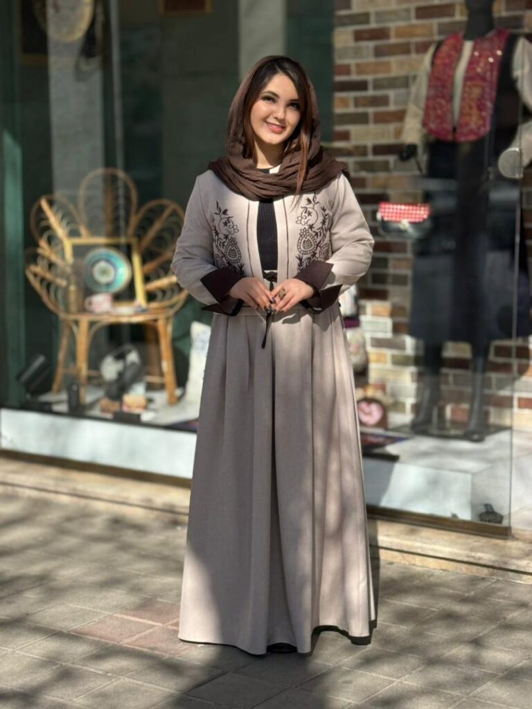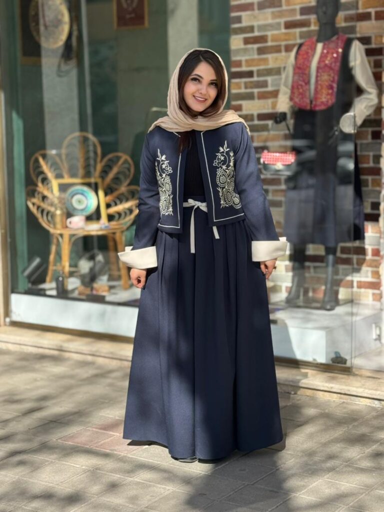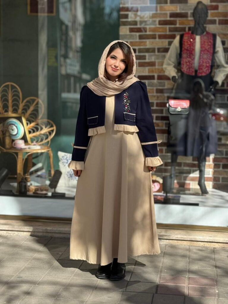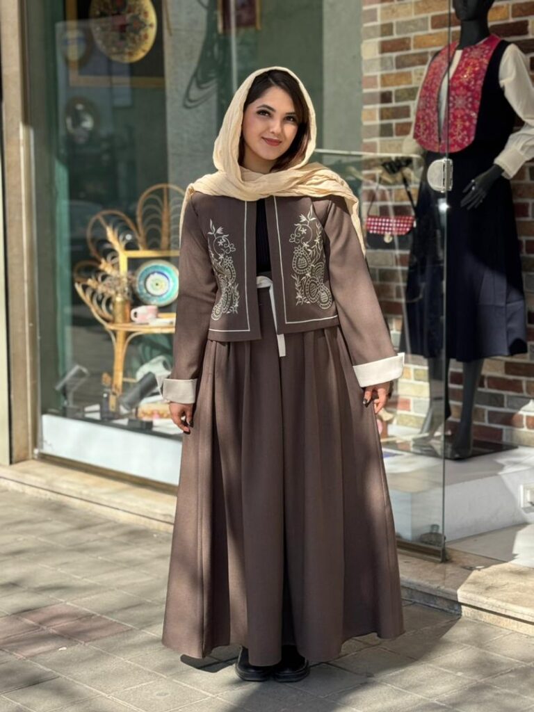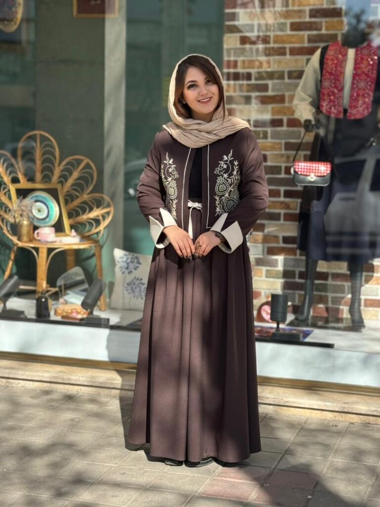 پیراهن نرگس قهوه ای سورمه ای گل کرم