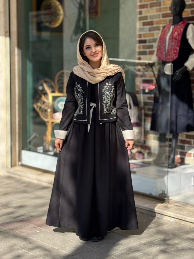 پیراهن نرگس مشکی زرشکی برگ ریز سبز