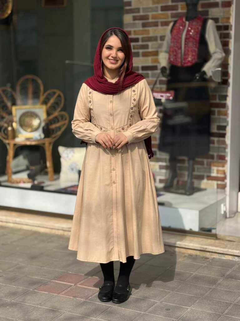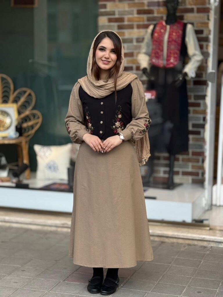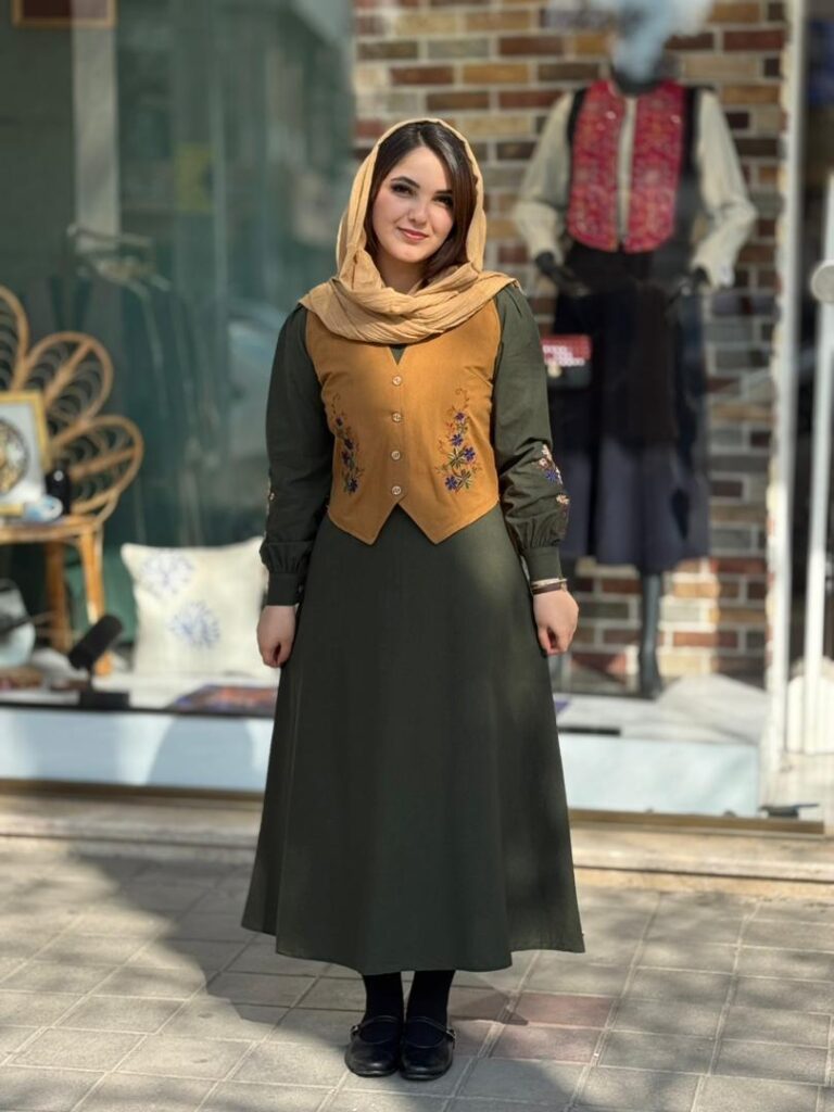 پیراهن جلیقه ترگل نسکافه ای یشمی