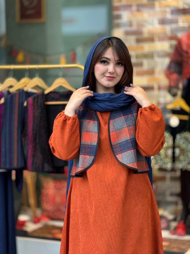 جلیقه تک شمیم نارنجی چهارخونه