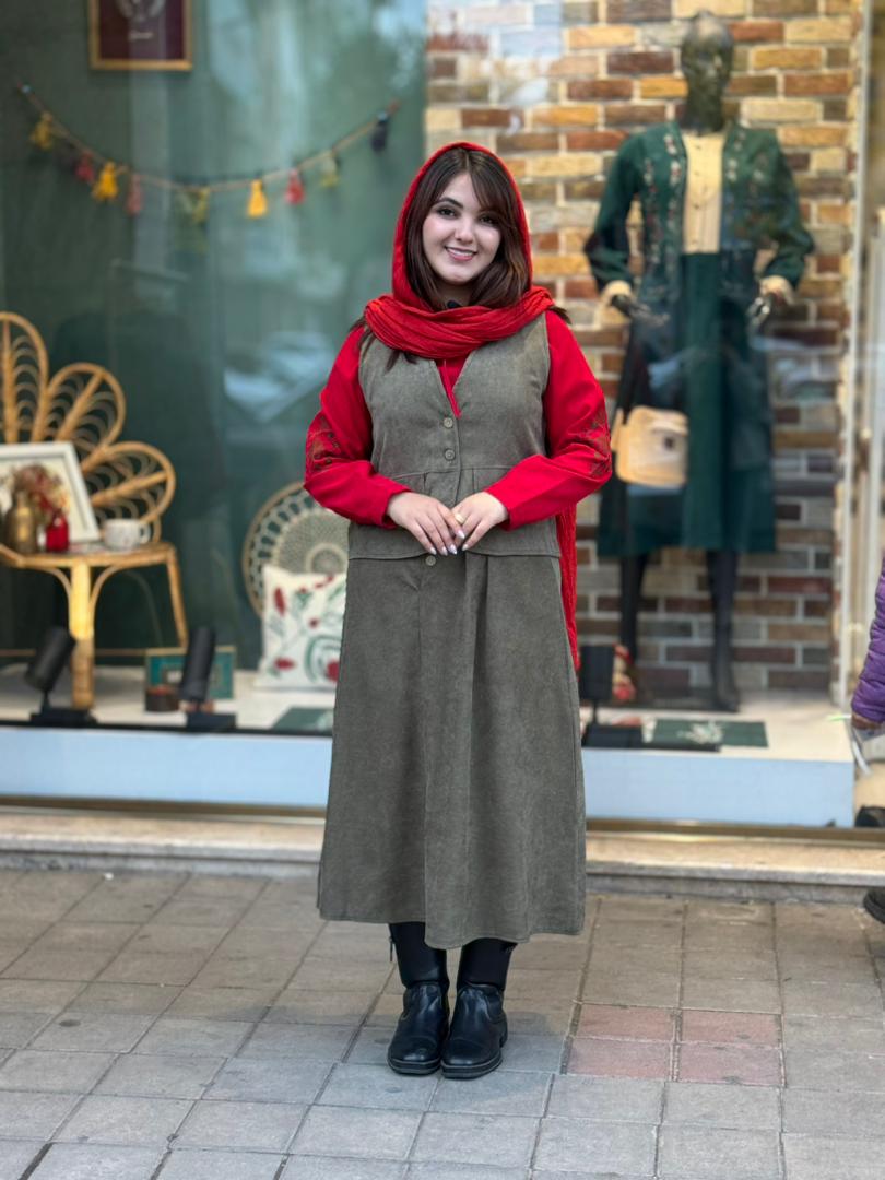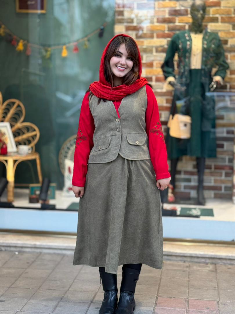 قد شومیز66/قد آستین58/قد دامن87/قد جلیقه53