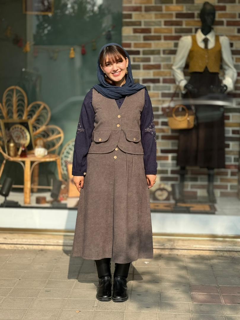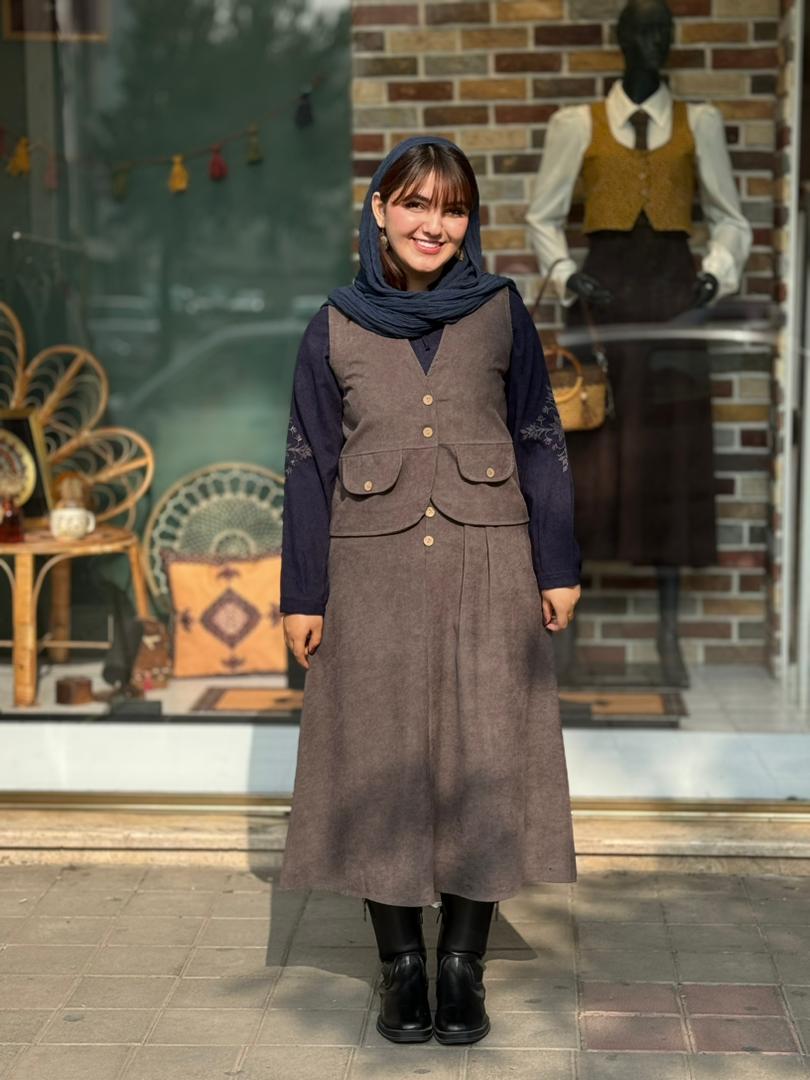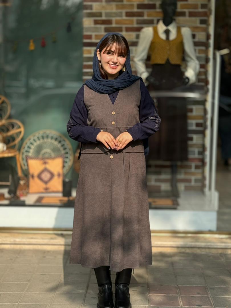 قد شومیز66/قد آستین58/قد دامن87/قد جلیقه53