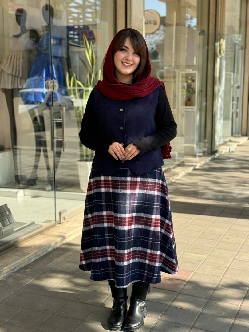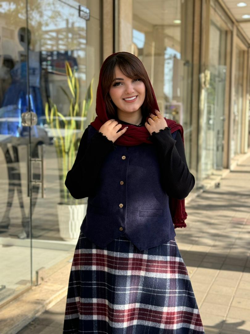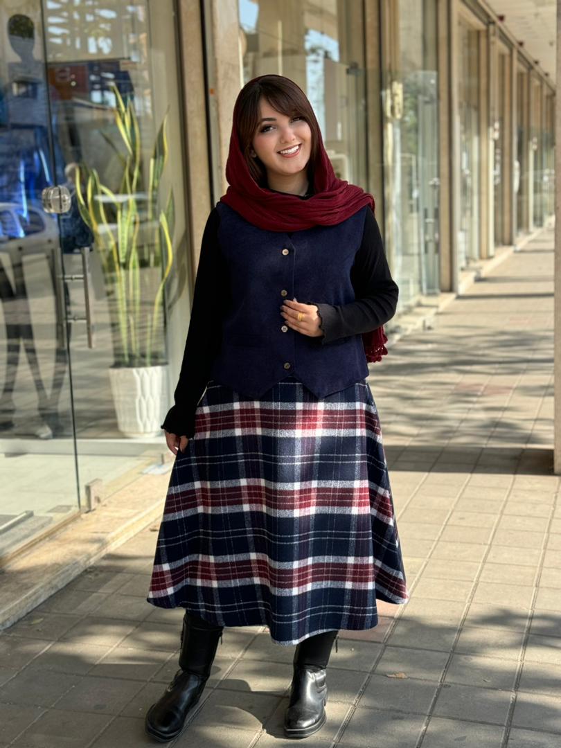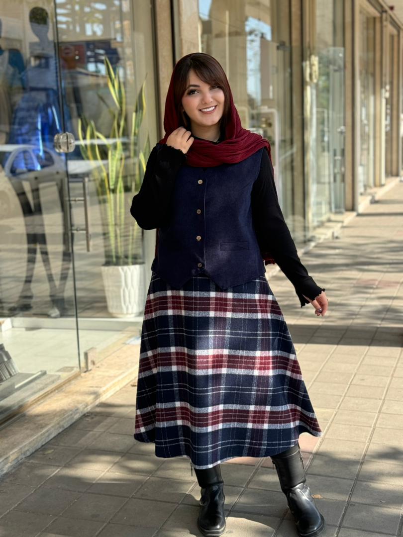 ست جلیقه دامن آذر سورمه ای زرشکی