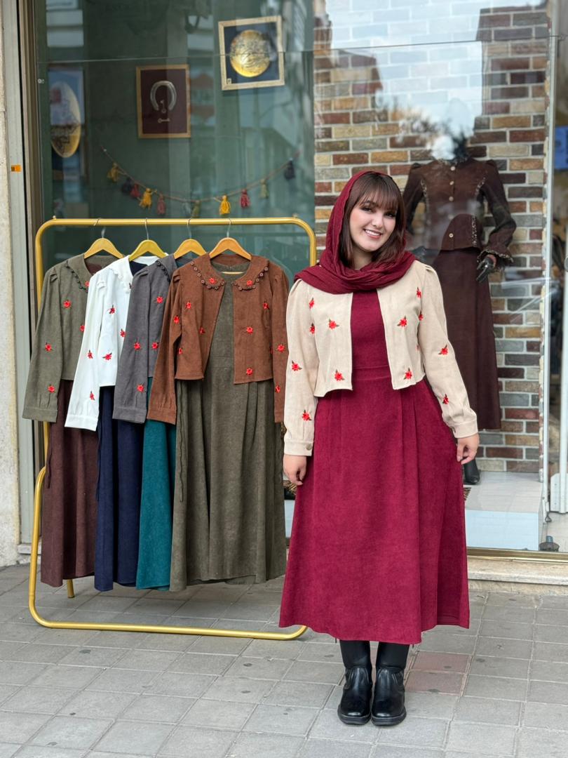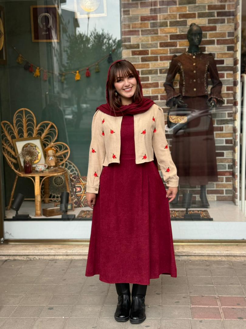 ست دوتیکه کاج کبریتی زرشکی کرم