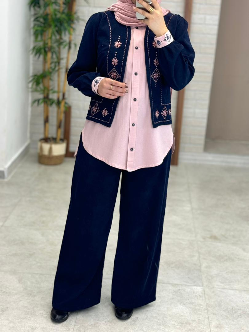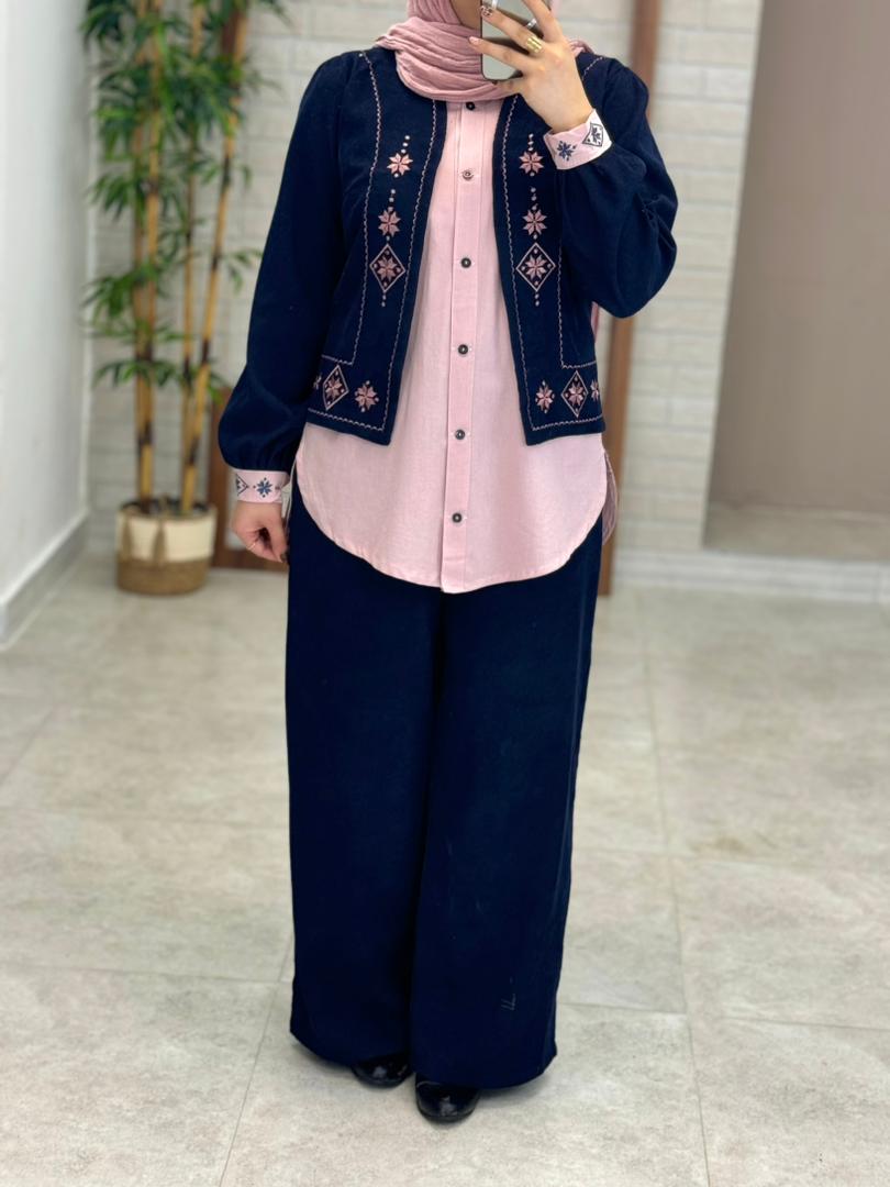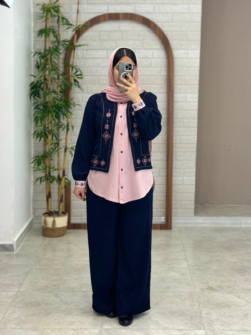 ست سه تیکه دل آوا پاییزه سورمه ای صورتی