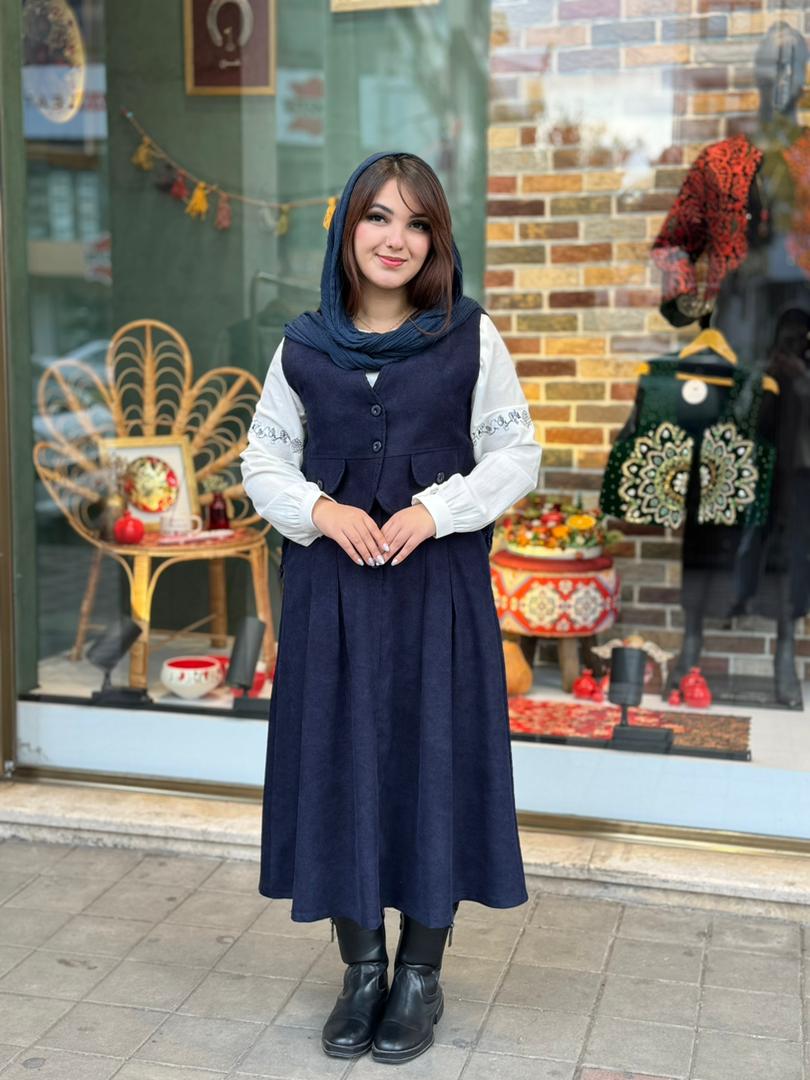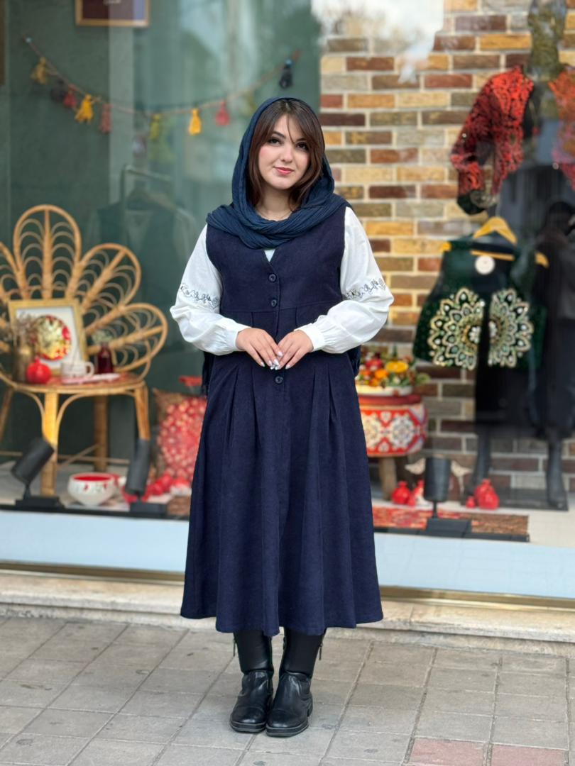 جنس جلیقه و دامن:مخمل کبریتی/جنس شومیز:لینن
