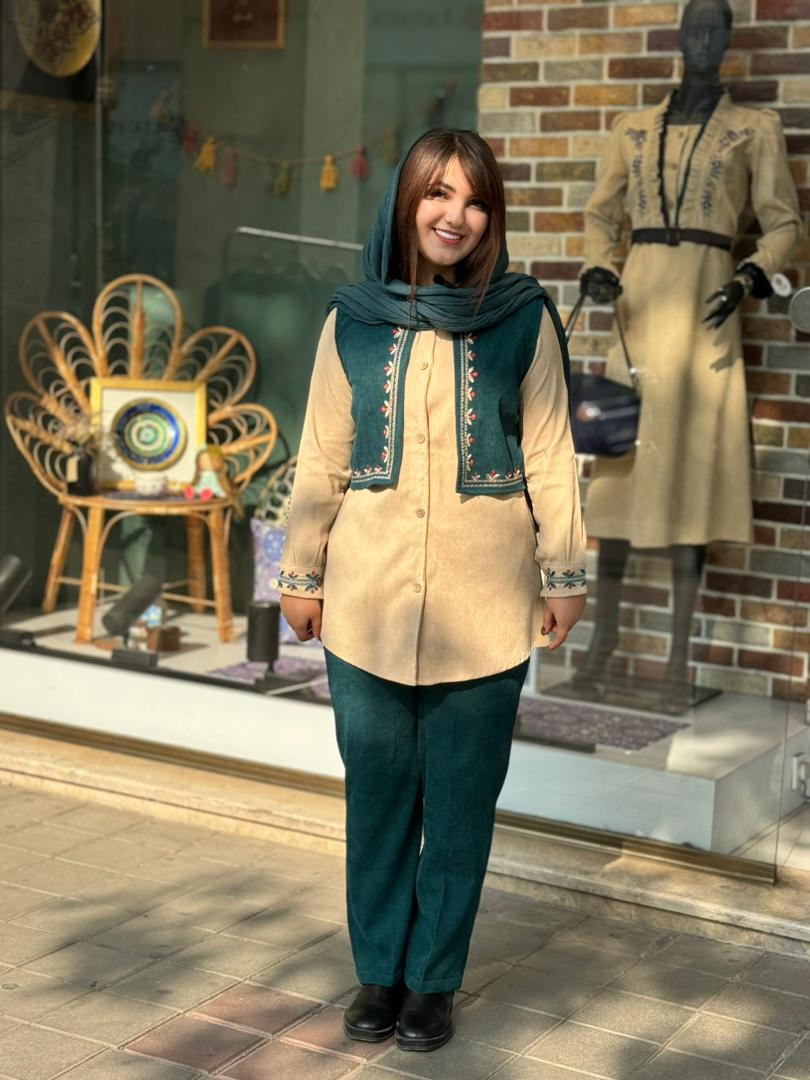 قد شومیز77/قد آستین55/قد جلیقه42/قد شلوار95