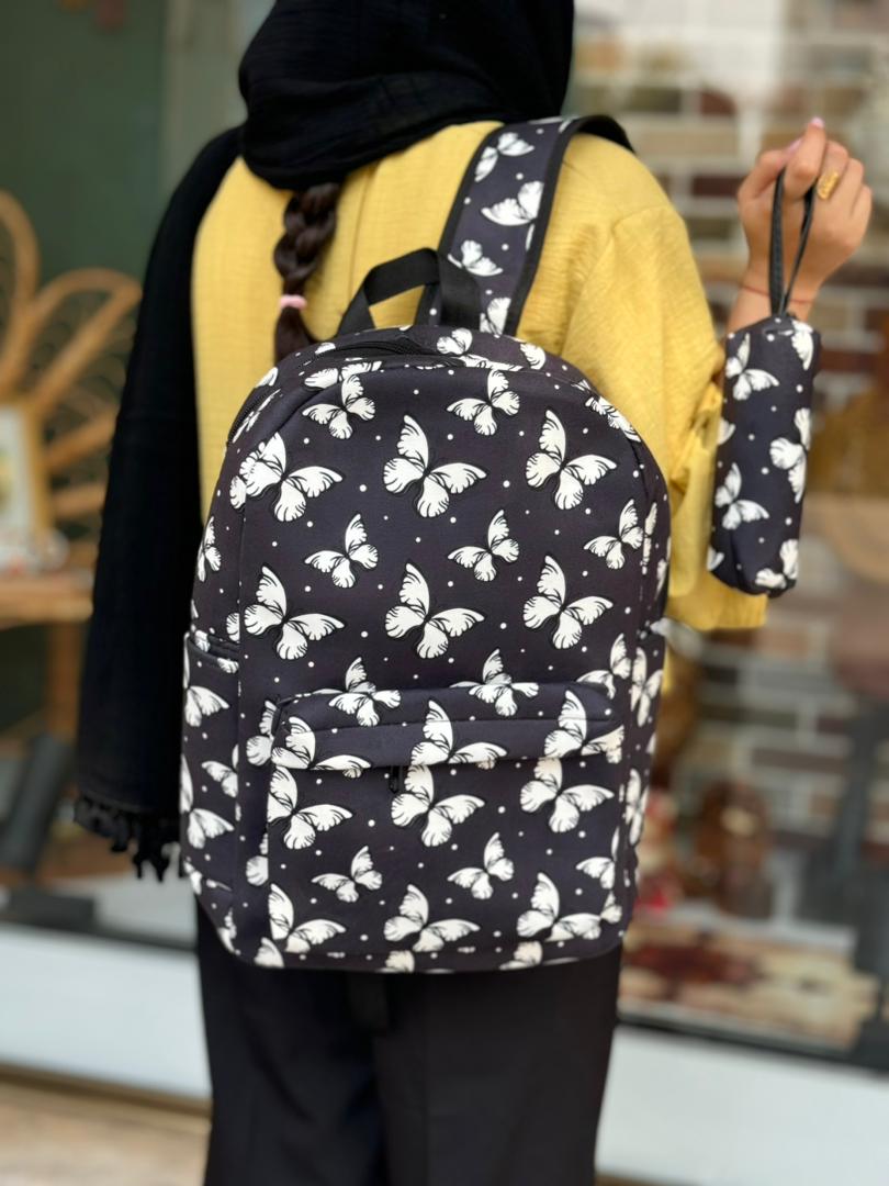 ست کوله پشتی و جامدادی پروانه سفید مشکی