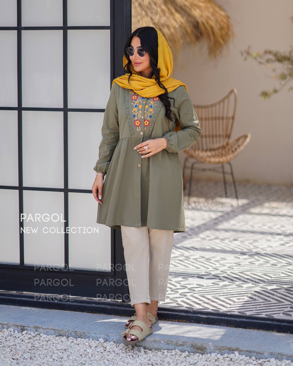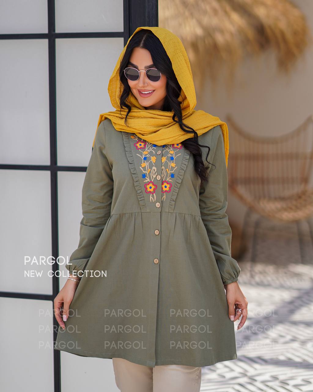 • جلوی مانتو گلدوزی شده است