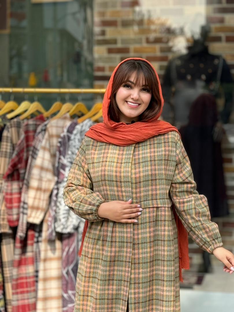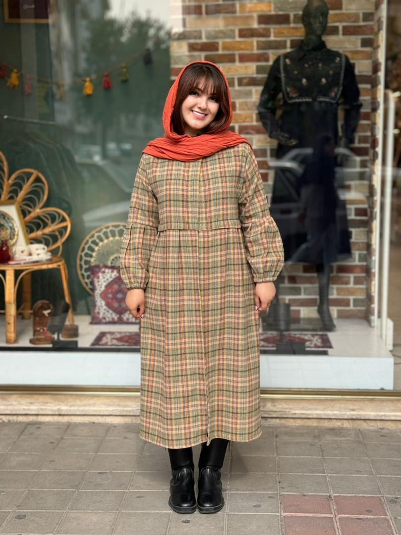 پالتو زمستانی زیتونی خردلی چهارخونه ریز