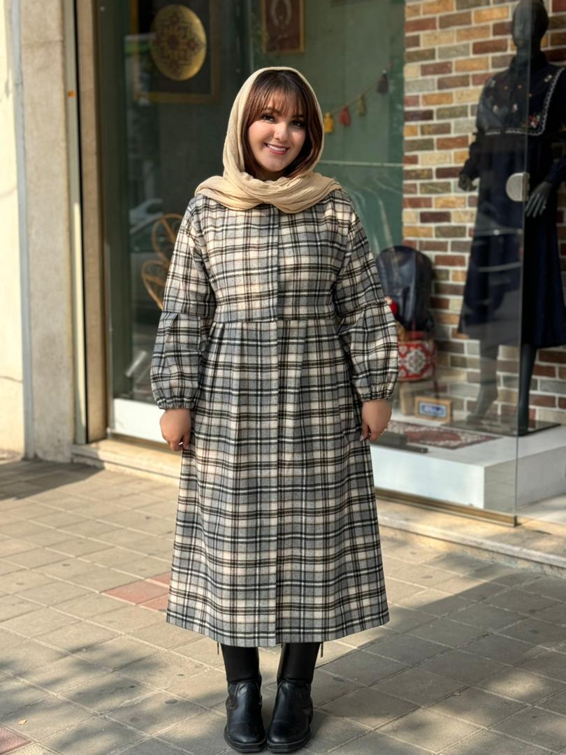 پالتو زمستانی سفید مشکی چهارخونه ریز