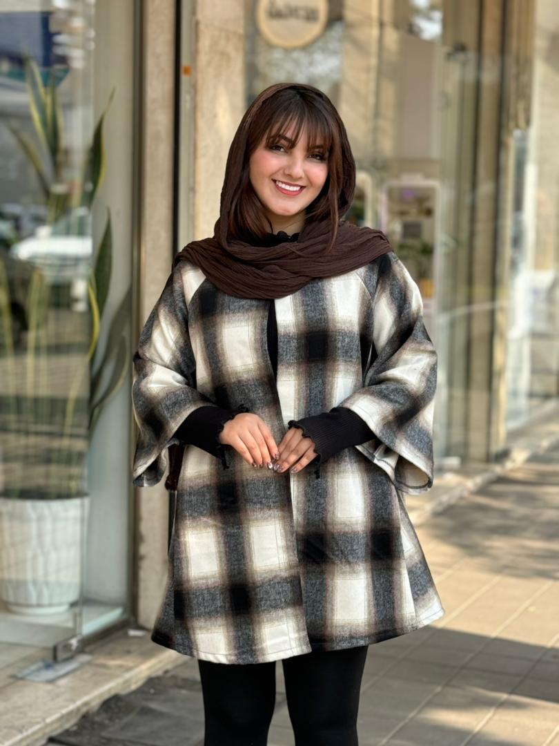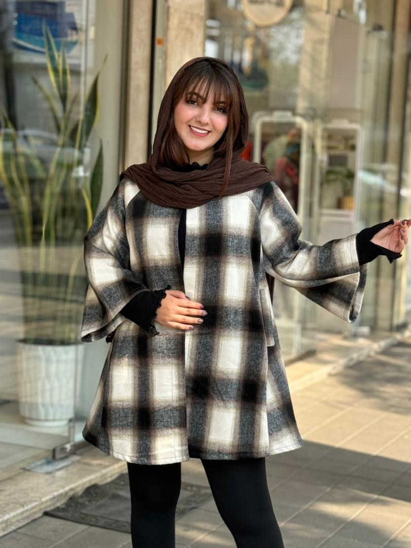 پالتو عروسکی سفید مشکی ذغالی چهارخونه