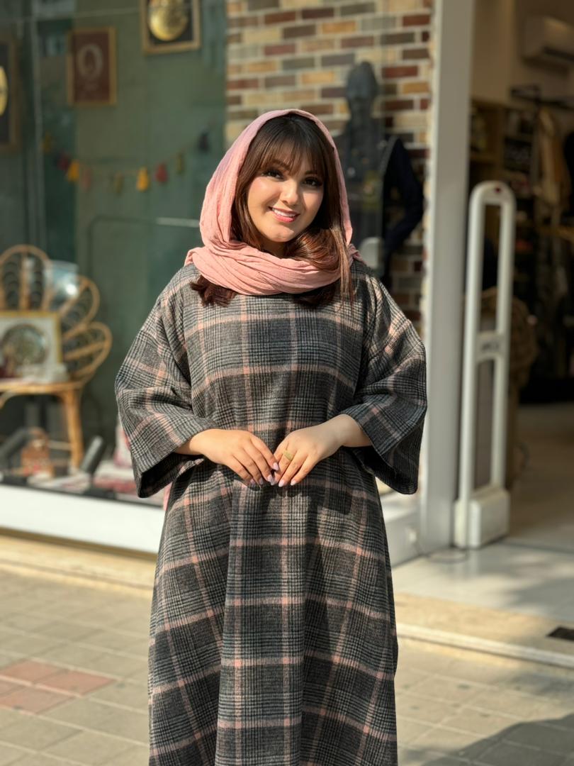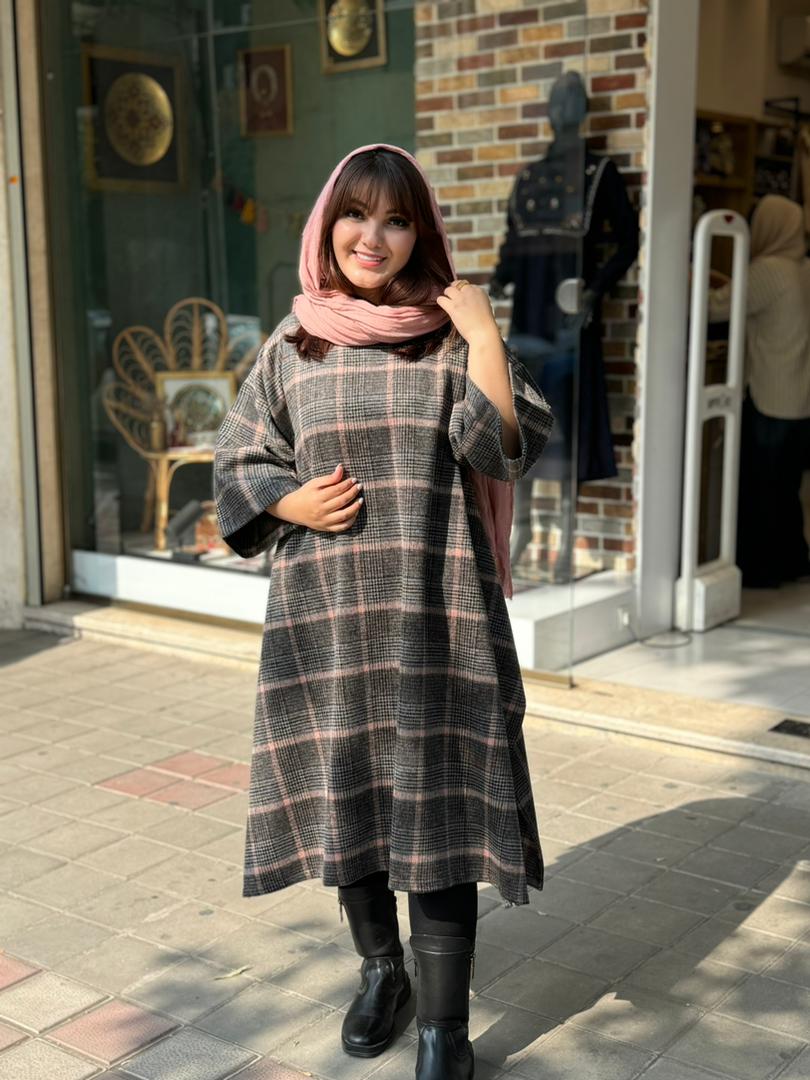 پانچ جلوبسته پشمی طوسی صورتی چهارخونه