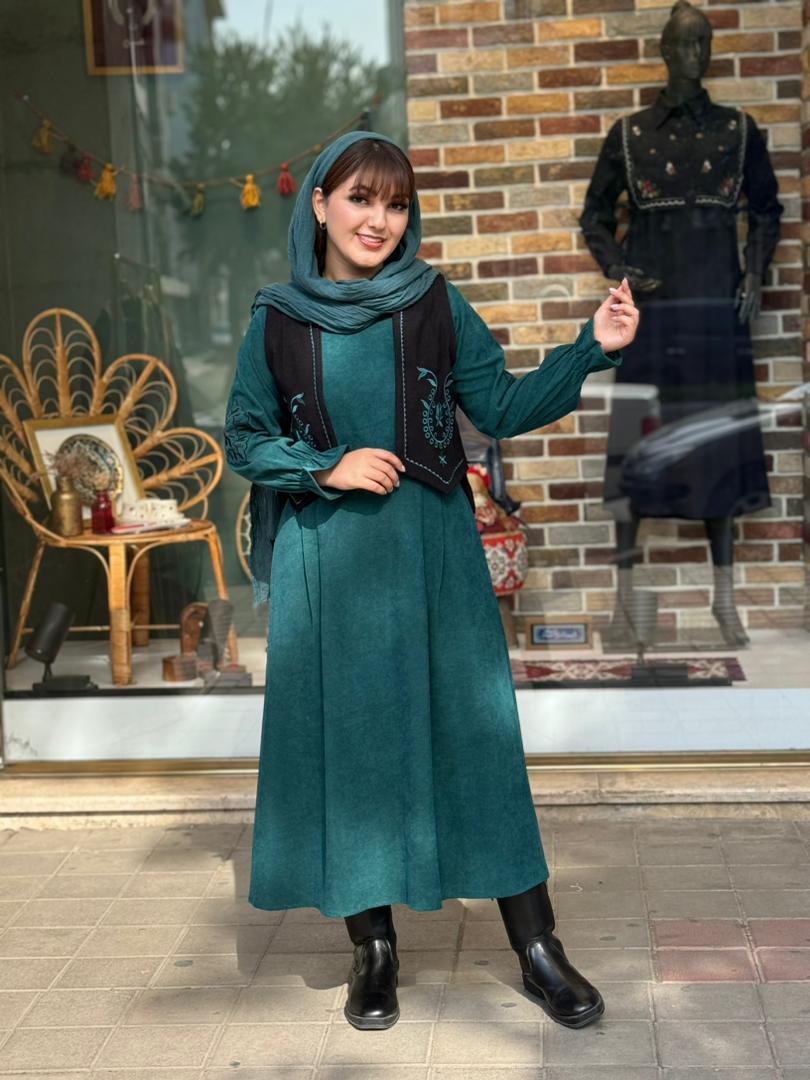 جلوی جلیقه و آستین ها گلدوزی شده می باشد