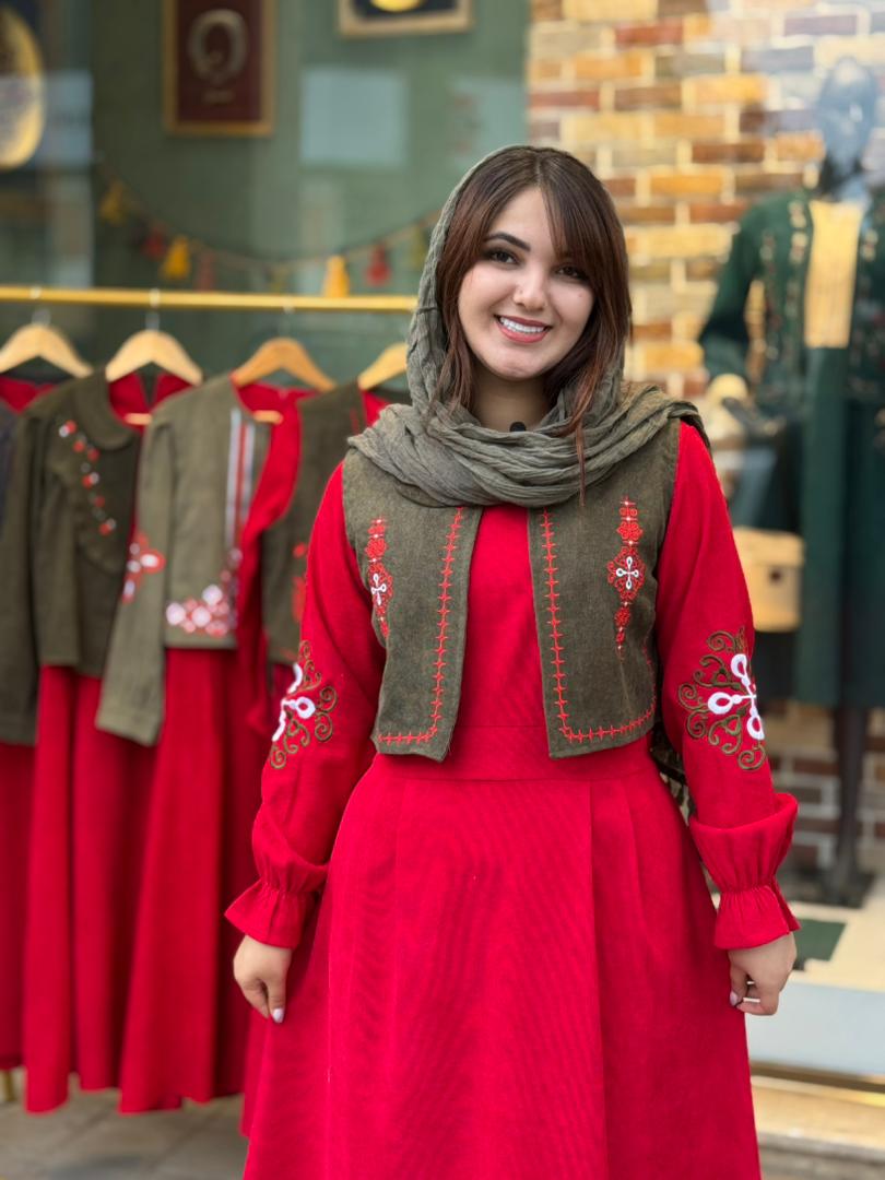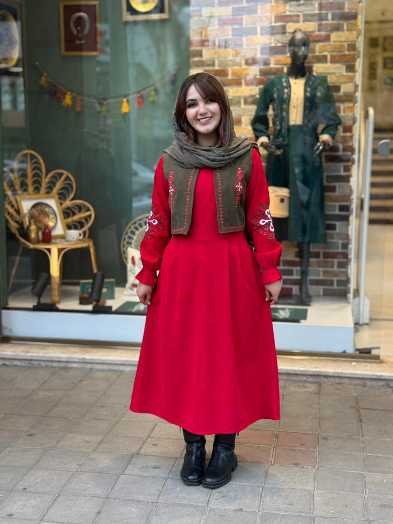 پیراهن جلیقه ترنم کبریتی قرمز یشمی