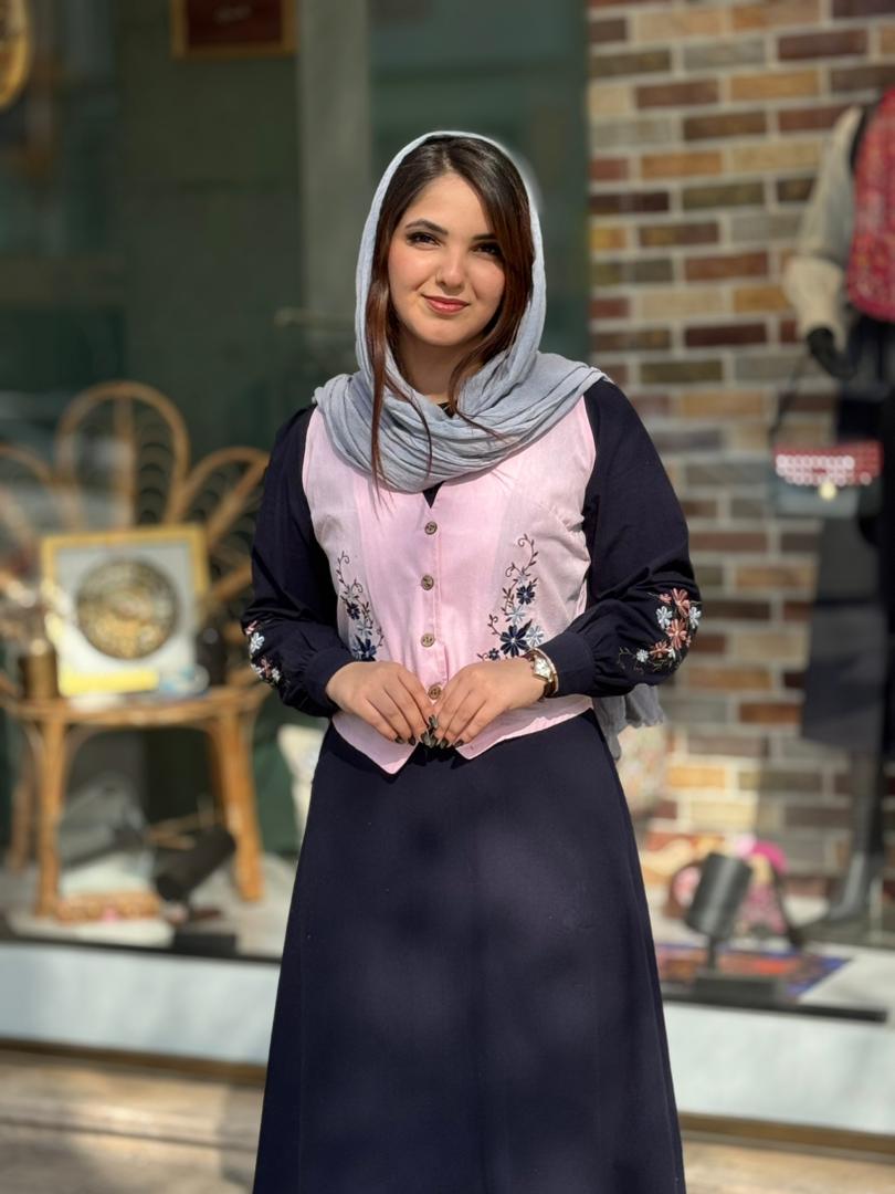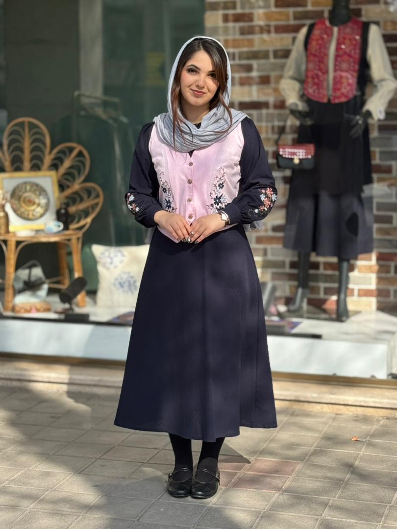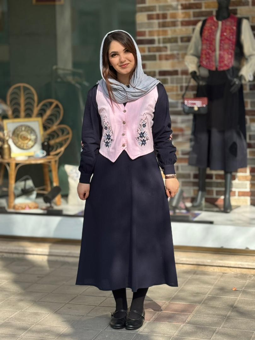 پیراهن جلیقه ترگل سورمه ای صورتی