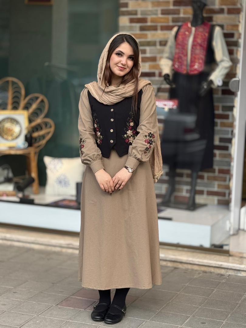 جلیقه و آستین ها گلدوزی شده می باشد