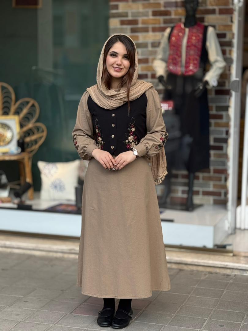 پیراهن جلیقه ترگل نسکافه ای مشکی