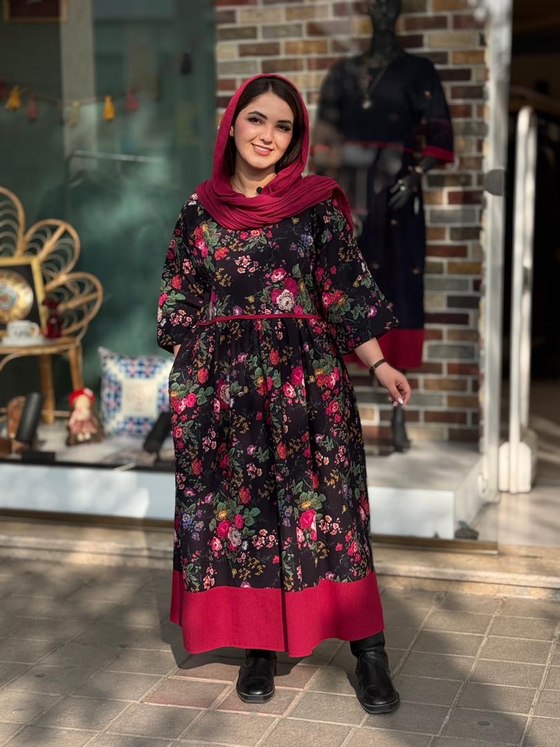پیراهن نرگس سورمه ای سرخابی گل درشت