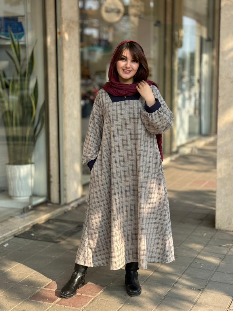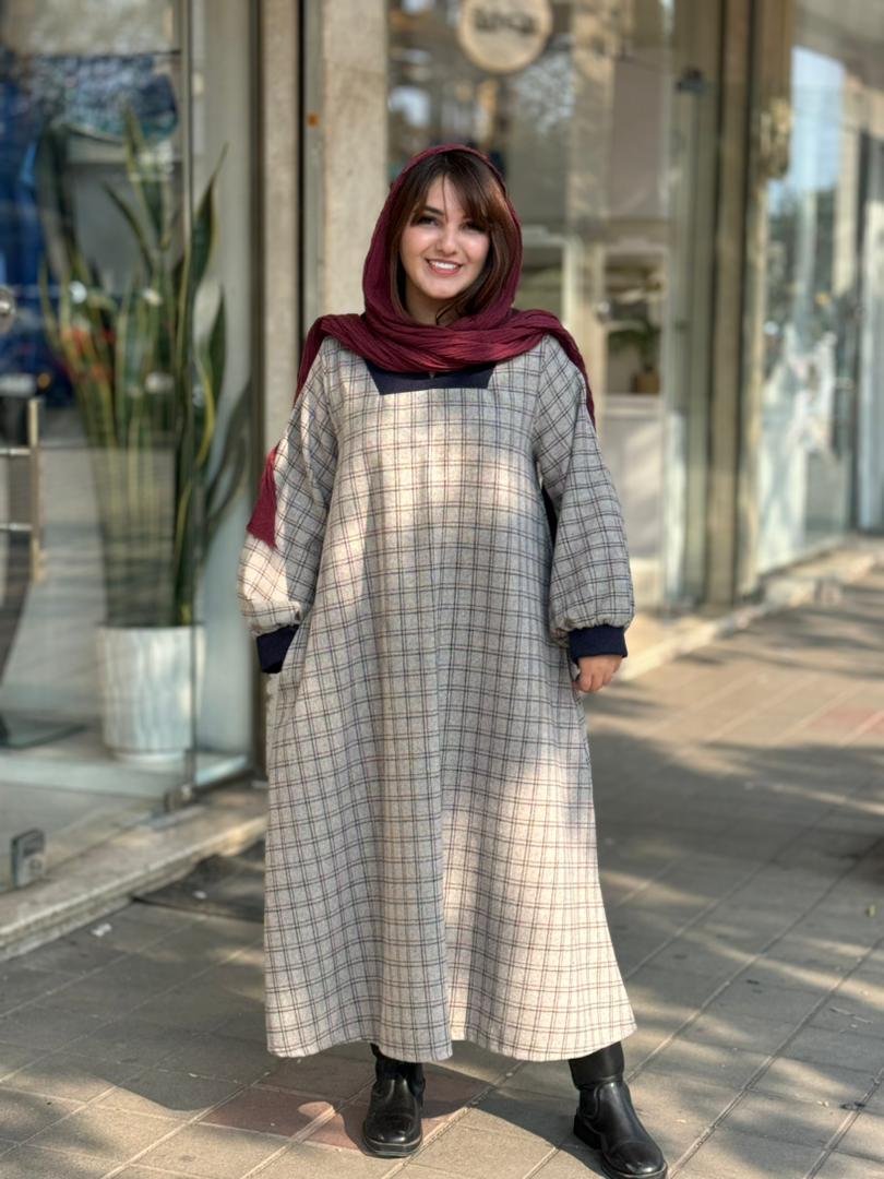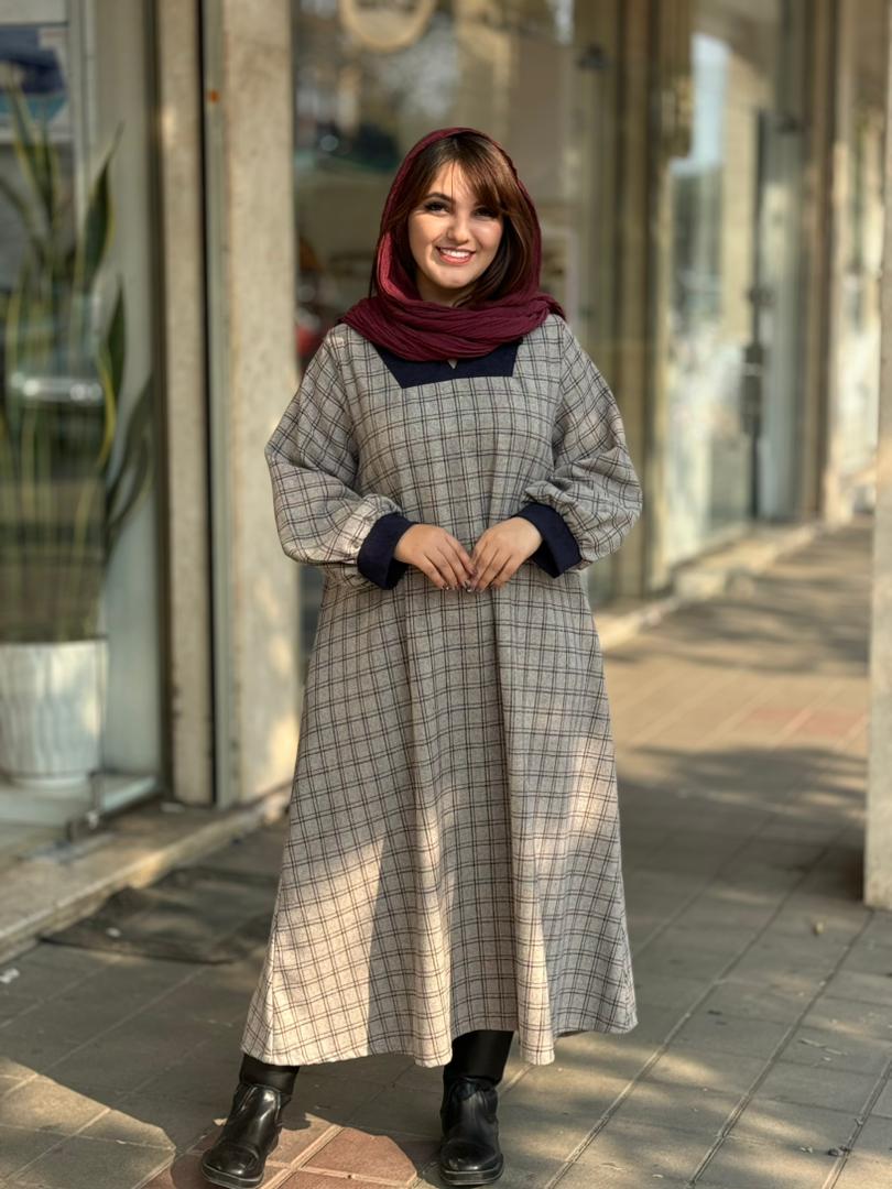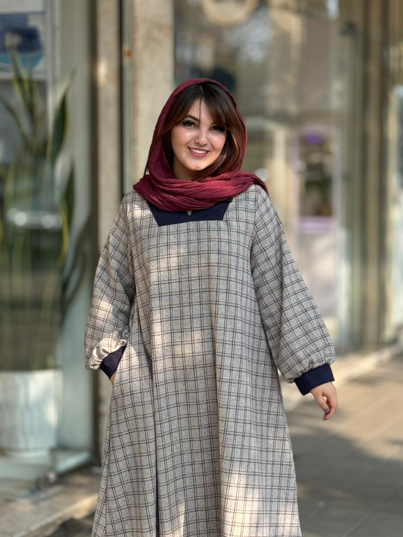 پیراهن هدیه طوسی خط مشکی زرشکی