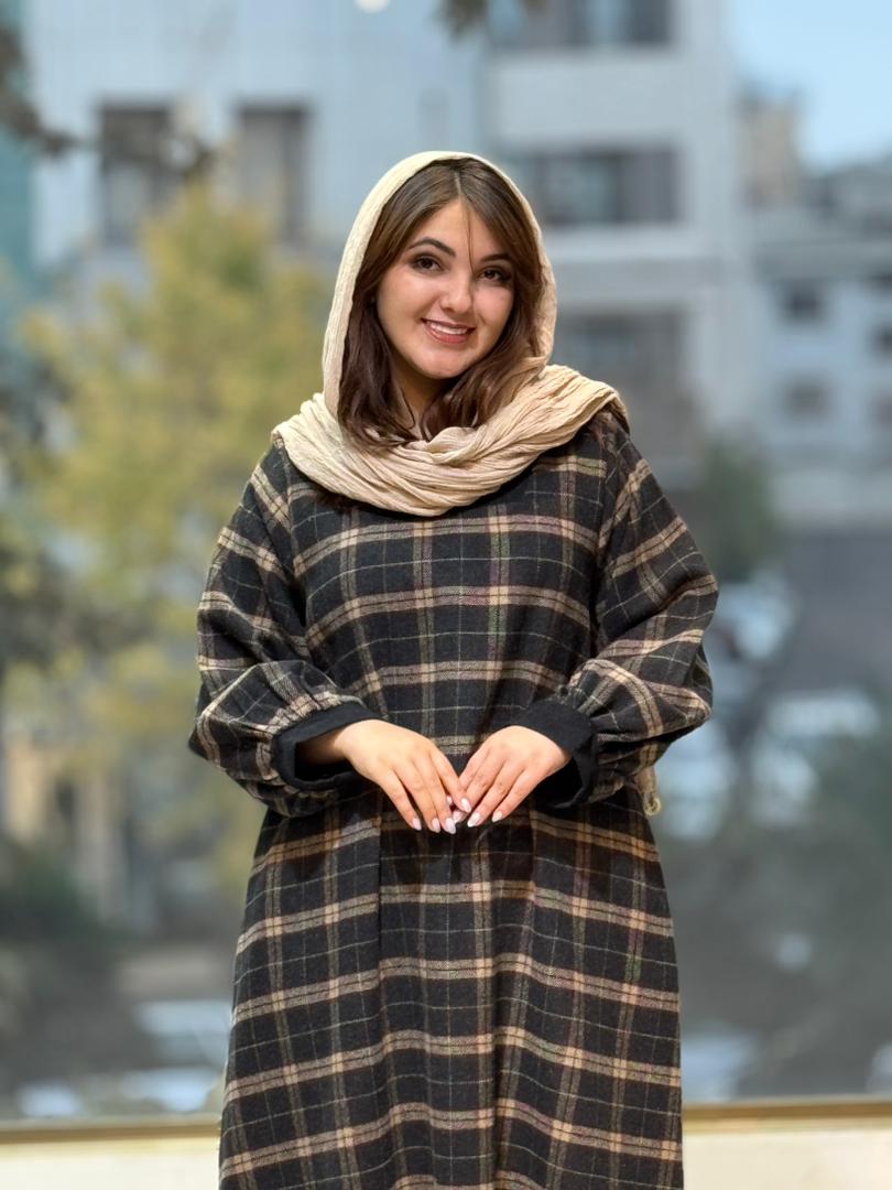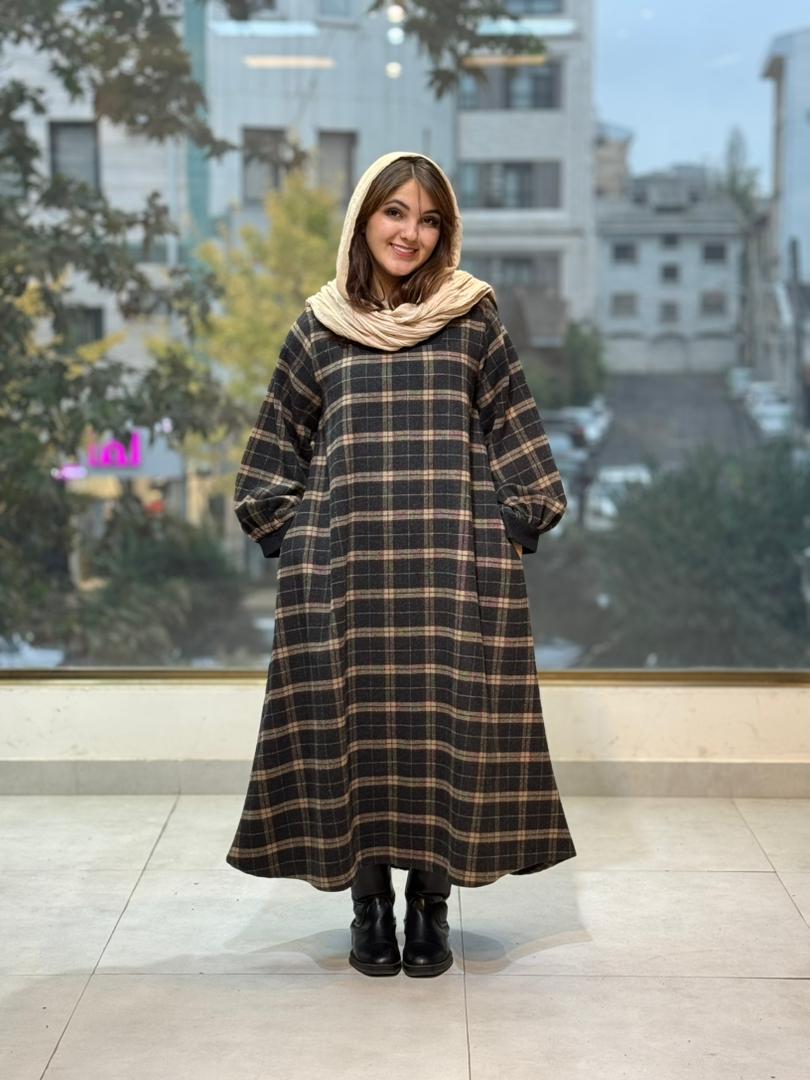 پیراهن هدیه مشکی نسکافه ای چهارخونه