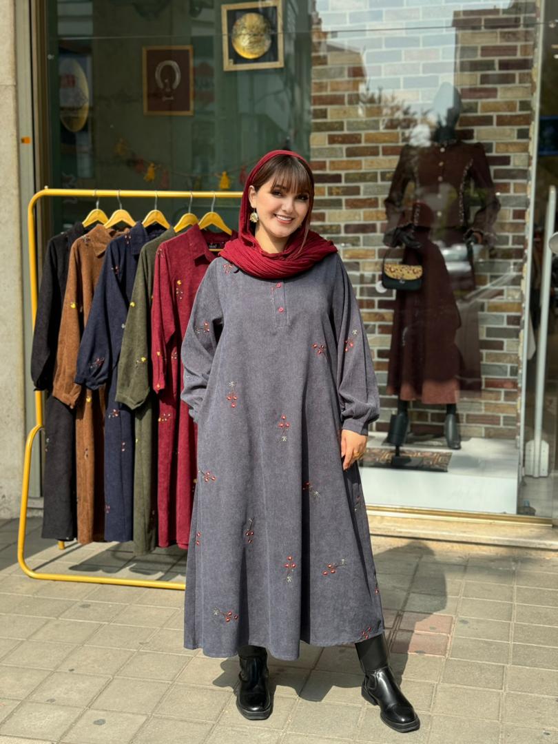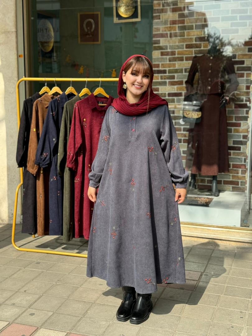 پیراهن شکیبا کبریتی طوسی