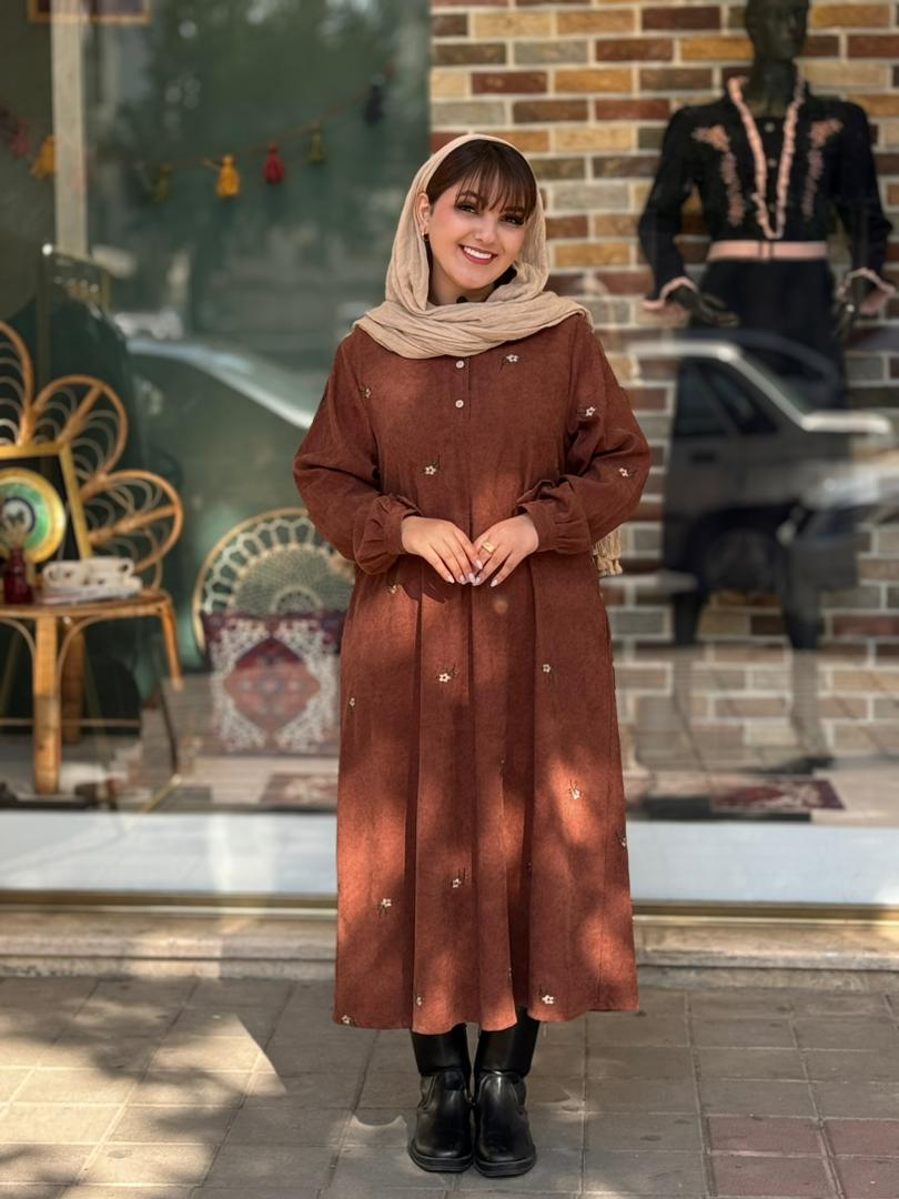 پیراهن شکیبا کبریتی قهوه ای شتری