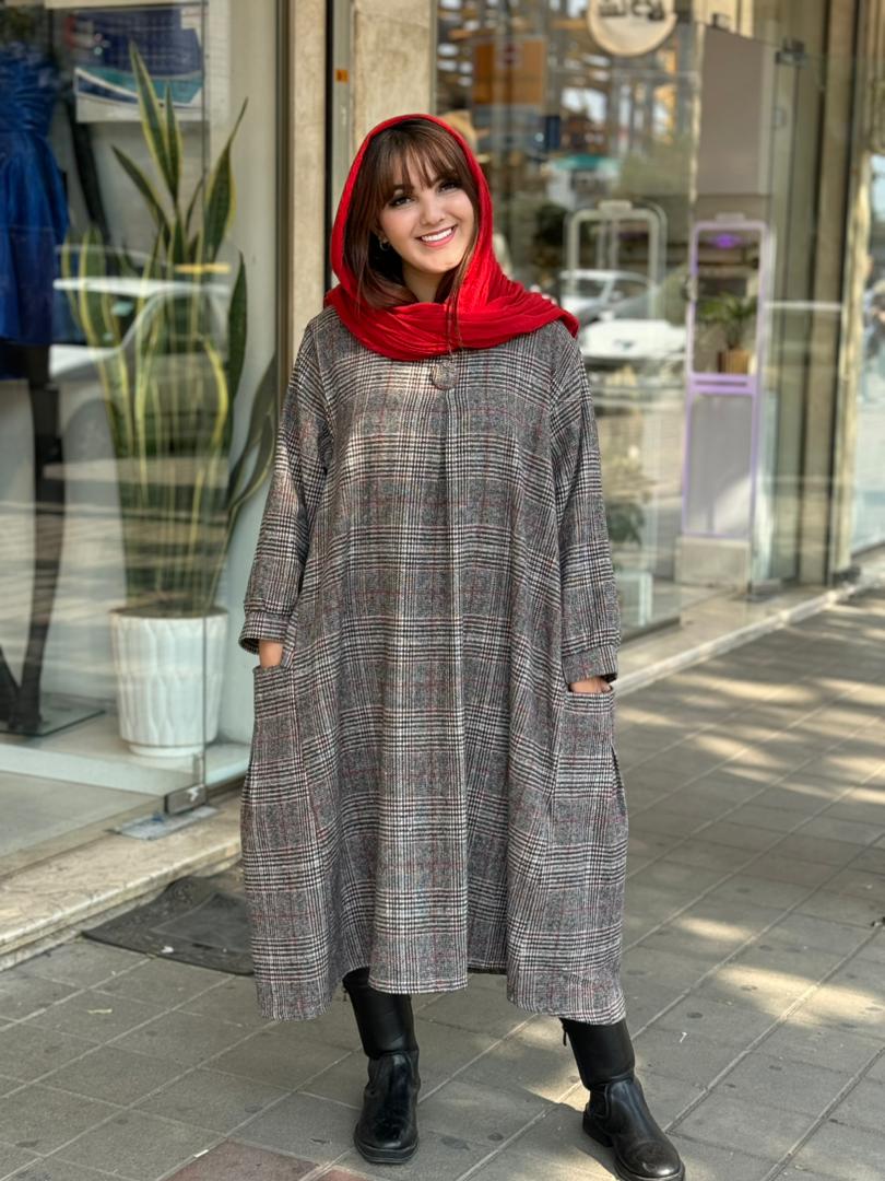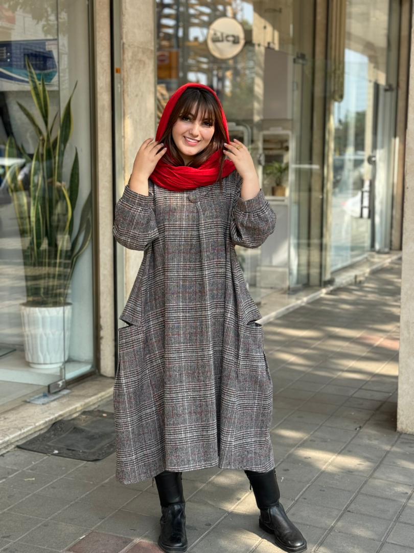 پیراهن کعبه طوسی زرشکی چهارخونه ریز