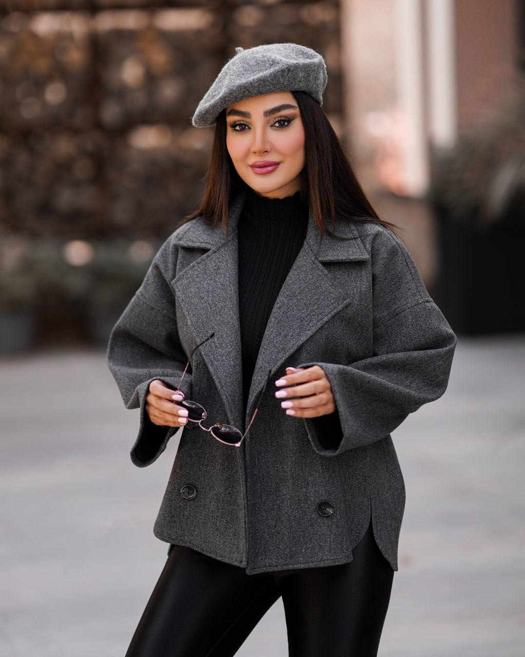 • قد جلو کت60 و قد پشت65/قد آستین از یقه64/دور بازو44/دور سینه118/دور کمر116