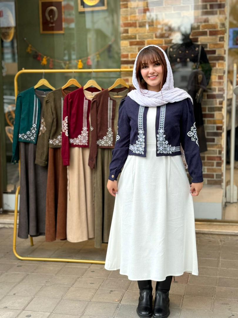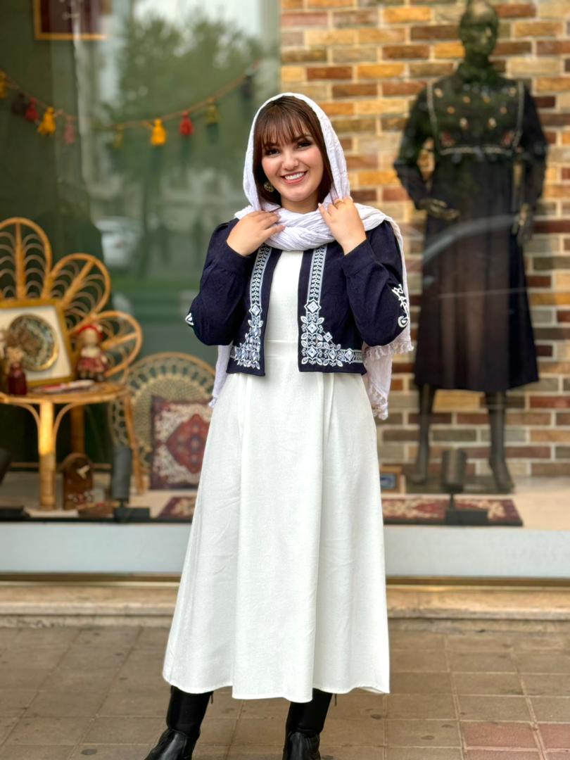 کت و سارافون نازلی کبریتی سفید سورمه ای