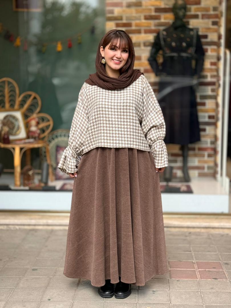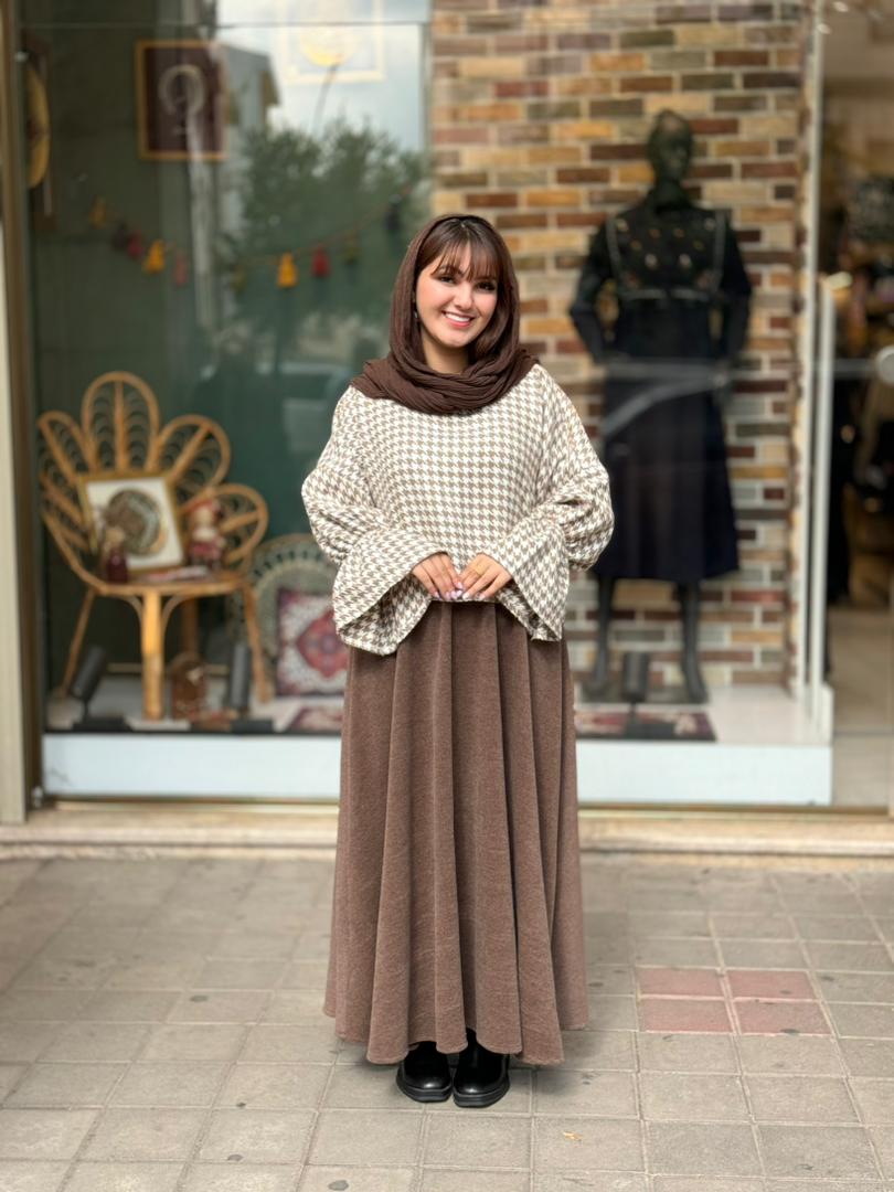 دامن:قد95/دور کمر در حالت عادی66 و در کشیده ترین حالت116/دور باسن160